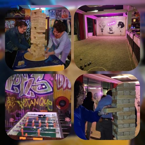 Het was een heerlijke avond waarin we vele spelletjes konden doen zoals jeu de boules, reuzen Jenga, tafelvoetbal en er was een speciale karaoke room.